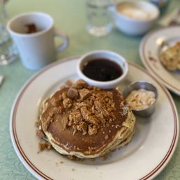 not sure why this place only has 3.4 stars. my friend and i were able to walk in without a reservation and only waited about 10 minutes which was great. the ambiance is cute and homey - very fitting for a diner. they have a nice lil patio area as well! the this little piggy was awesome! everything was cooked to perfection and the dish had a good balance of spicy, savory, and sweet flavors. the chili crunch cheese fries were dope too - well-seasoned and had the perfect amount of crispiness. i tried a bite of my friend's patty melt and that was also great. for drinks, i ordered a grown up cold brew. i would've liked this to be sweeter but it wasn't bad. it gave me a nice buzz - they definitely didn't skimp on the bourbon. i will be back!